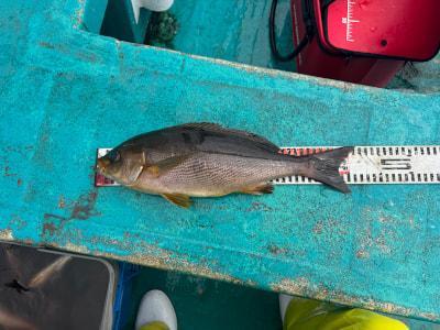お姉さんやりました!!🙌 イサギ仕掛けで見事、魚拓サイズのお腹パンパン✨良型 グ〜レー45センチGET❗️👏👏 おめでとうございます😆 |