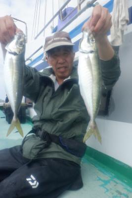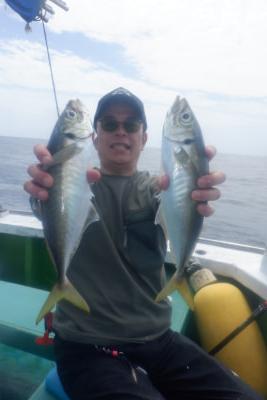 | 開始早々好調に釣れていたが途中からカツオの猛襲でアジが釣れても巻き上げ途中や降ろす途中に飛びつかれて苦戦でした。 |