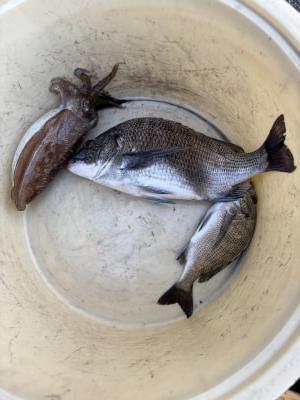 チヌ | 23〜32cm | 2匹 | 竿1,6mハリス1,75号チヌ針3号 | シラサ、オキアミ |