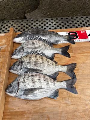 チヌ | 29〜33cm | 4匹 | 竿1,6mハリス2号チヌ針4号 | ボケ、オキアミ |