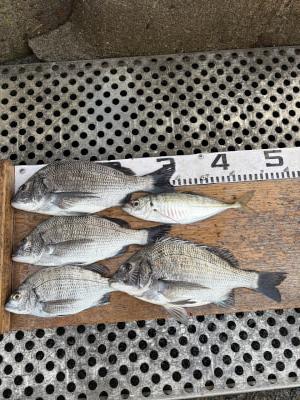 チヌ | 25〜30cm | 4匹 | 竿1,6mハリス1,7号チヌ針4号 | オキアミ、ボケ |