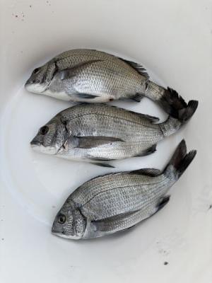 チヌ | 25〜28cm | 3匹 | サオ1,5mハリス1,5号チヌ針3号 | ボケ |