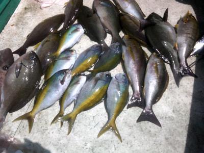 | イサギ・グレは 好調だったが ウメイロはやっぱり 苦労します。 あちこち移動しながら なんとかなりました。 又 サメも やってきてるので 仕掛けは 多めに用意してください。 |