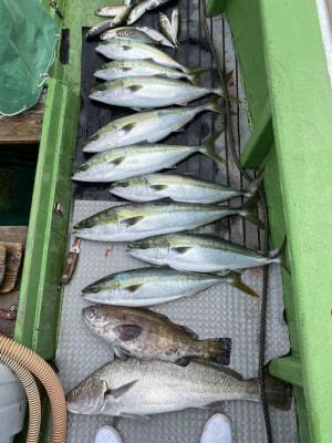| 落とし込みとノマセ釣りで出船しました。釣果はブリ メジロ ハマチ オオスジハタ ニベ アジなどです。5月4日 5日 6日 空いてますのでご予約お待ちしております。平日も空いてますのでご予約お待ちしております。 |