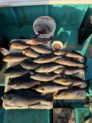 | 午後便でグレ釣りに出船♪ いつものポイントは上り潮が早く、第2のポイントへ♪ 白子パンパンのグレ47cmGETしましたが、40cmオーバーサイズの水面でのハリス切れもありました( >д<) グレ釣り予約受付中♪ |