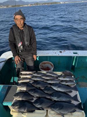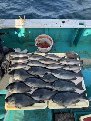 | 午後便でグレ釣りに出船♪ いつものポイントはグレ釣りには悪条件の上り潮だったので、第2のポイントへ♪ グレのサイズよく、ハリス切れ多数ありましたが、グレ、イサギ釣れました♪ まだまだ白子パンパンであちこち浮きグレだらけです♪ |