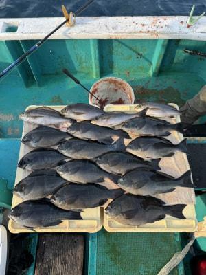 グレ | 35〜42cm | 13匹 | 竿1号5.3m ハリス2号 針6号 玉ウキ2B | オキアミ | |
