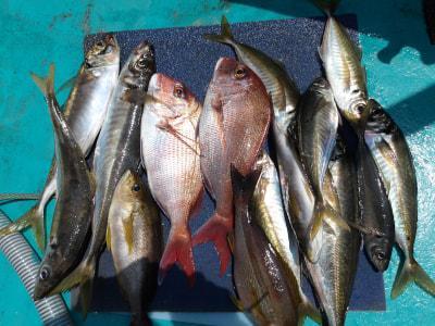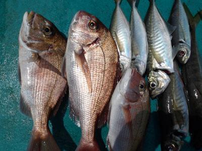 マダイ | 35〜45cm | 3匹 | 竿釣り | オキアミ |