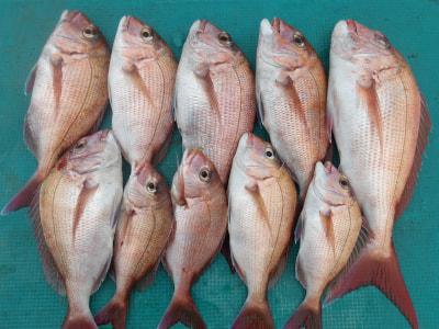 マダイ | 30〜53cm | 10匹 | 竿釣り | オキアミ |