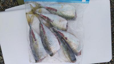 マアジ | 29cm | 6匹 | サビキ8号 ハリス2.5号 オモリ15号 竿2.1m | アミエビのマキエ釣り |