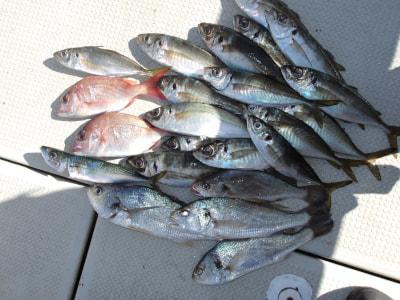 マアジ | 25〜35cm | 16匹 | 胴付き3本針 | 青虫・オキアミ |