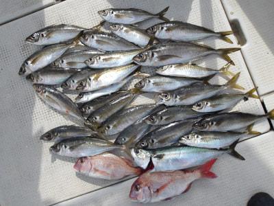 マアジ | 25〜40cm | 30匹 | 胴付き3本針 | 青虫・オキアミ |