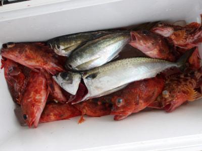 マアジ | 27cm | 2匹 | 胴付き3本針 | 青虫・オキアミ |