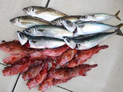 マアジ | 27〜35cm | 3匹 | 胴付き3本針 | 青虫・オキアミ |