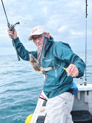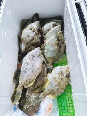 カワハギ | 18〜25cm | 胴付き仕掛け、重り30号 | 生アサリ |