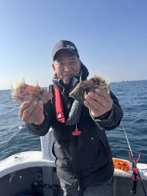 カワハギ | 18〜24cm | 胴付き仕掛け、重り30号 | 生アサリ |