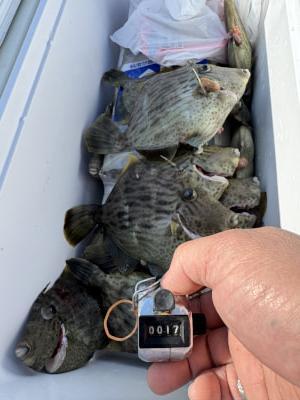 カワハギ | 18〜24cm | 17匹 | 胴付き仕掛け、重り30号 |