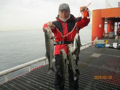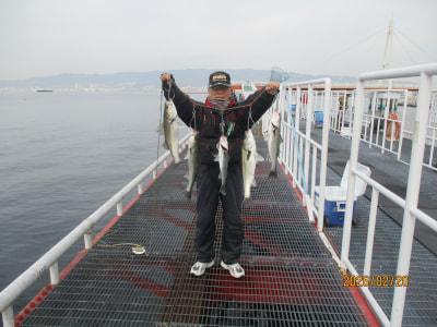 堺市の鳥居様 ハネ 47~52cm 3匹 チヌ 32cm 1匹 外向きでの釣果です |