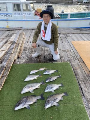 チヌ | 33〜42cm | 5匹 | ハリス1.5 針2 錘なし | 沖アミ | |
