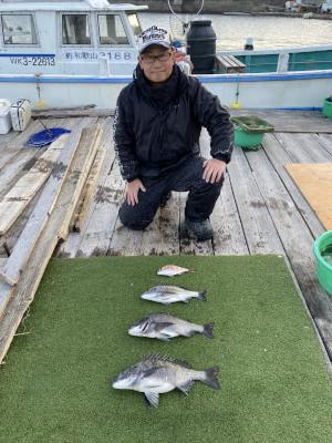 筏●チヌ | 34〜47cm | 5匹 | ハリス1.5 針3 錘なし | 沖アミ | |