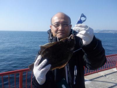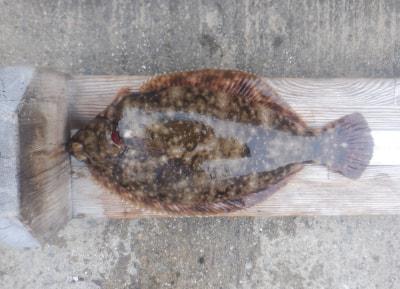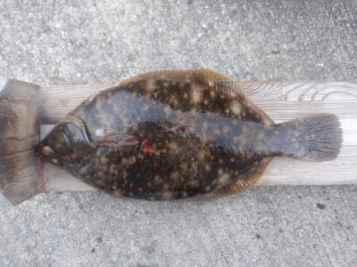 カレイ | 34.5cm | 1匹 | 投げ釣り 針14号 ハリス5号 オモリ35号 竿4.25m 棚底 | マムシ アオムシ |