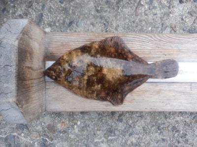カレイ | 20cm | 1匹 | 投げ釣り 針12号 ハリス3号 オモリ30号 竿3.9m 棚底 | マムシ アオムシ |