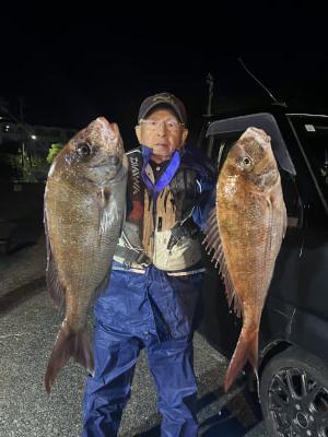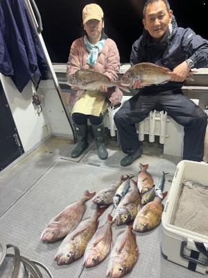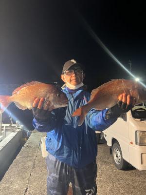 マダイ | 40〜63cm | 27匹 | 天秤ズボ、オモリ100号 | オキアミ |