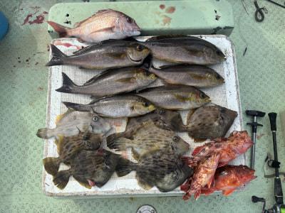 | 伝馬船釣果、イサギ、小鯛、カワハギなどが釣れてました |