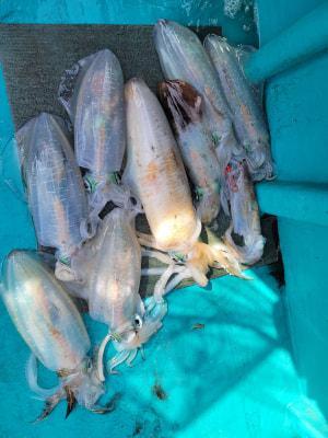 アオリ🐟早朝はうねり波多少有り苦戦するも頑張って🎣ヒット連続🙌活けアジ餌 |