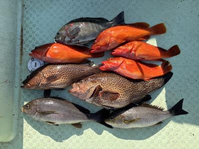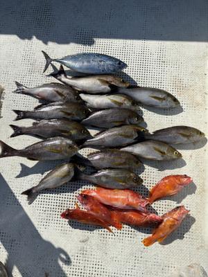 | 伝馬船釣果、イサギ、ヤイト、オオモンハタ、アカハタ、グレなどが釣れてました。 |