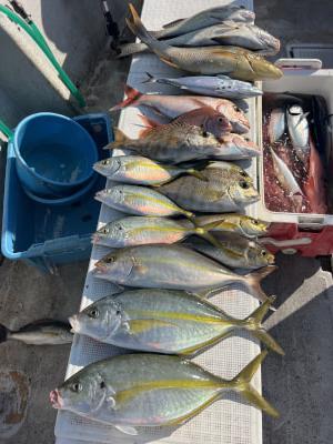 [シマアジ、ヤイトガツオ、マダイ、イサギ、コロダイ、タマミなど]