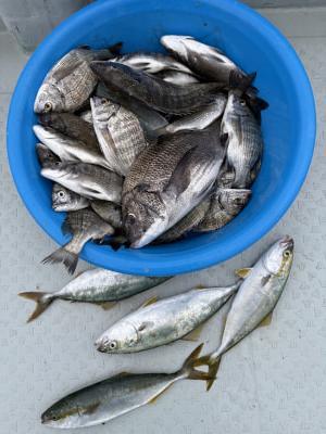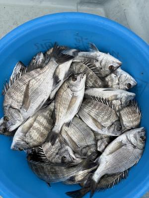 チヌ | 20〜27cm | 37匹 | 竿1,5mハリス1,2号チヌ針3号 | オキアミ、サナギ |