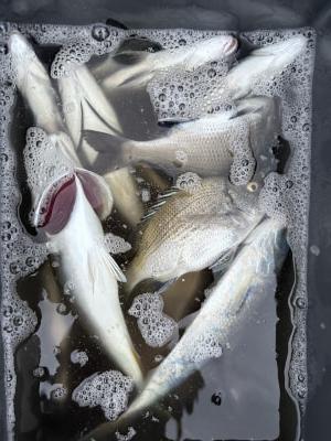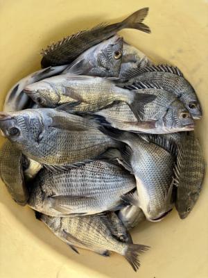 チヌ | 20〜26cm | 10匹 | 竿1,3mハリス2号チヌ針3号 | サナギ、オキアミ |