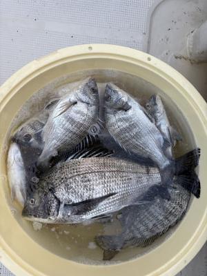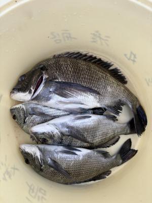チヌ | 26〜42cm | 4匹 | 竿1,6mハリス2号チヌ針5号 | 丸貝、サナギ |
