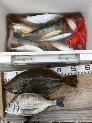 ヒラメ | 50cm | 1匹 | 4,5m 飲ませ仕掛け | 小アジの飲ませ |