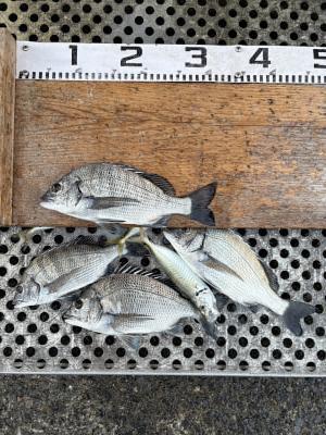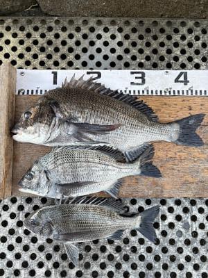 チヌ | 24〜28cm | 4匹 | 竿1,5mハリス1,5号チヌ針3号 | シラサ、オキアミ |