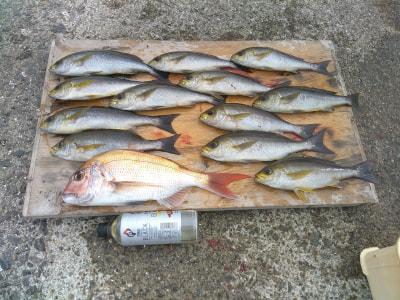 イサギ | 28〜33cm | 12匹 | テンビンズボと完全フカセ釣り ハリス3号 | オキアミ |