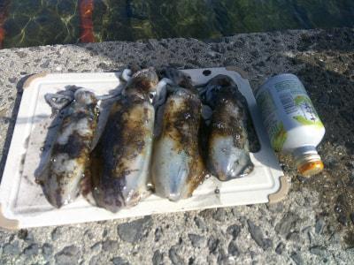 アオリイカ | 13〜17cm | 4匹 | 生きエサのヤエン仕掛け 道糸3号 | 活きアジ |