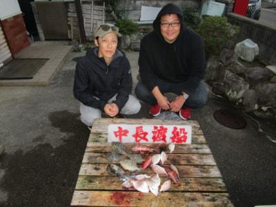 カワハギ連釣!! カワハギ4匹アオリ小鯛11匹ゲット 魚種多彩に勢揃い!! 牛島氏 淡中氏 |