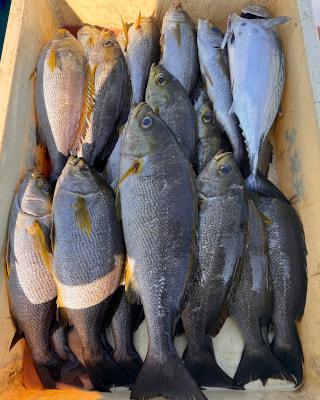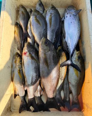 寒イサギ | 26〜39cm | 43匹 | 竿釣り 天秤サビキ ハリス3〜3,5号 鉄火面120 | アミエビ | |