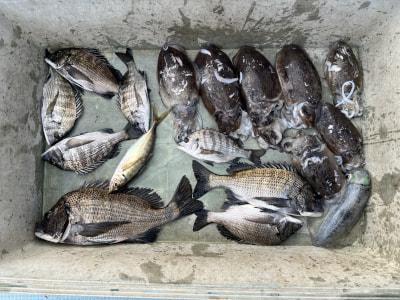 チヌ | 22〜43cm | 8匹 | 短竿 | アケミ貝 |