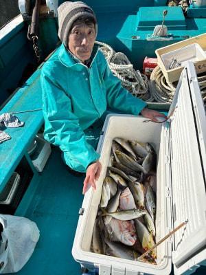 | 湾内アジ釣り&寒イサギ五目釣りに出船しました! アジ釣りは、良い感じに釣れてお土産に! 寒イサギ釣りは、イサギにチダイにマダイにヘダイにイシダイなど釣れて楽しんで頂きました♪ 明日は、落とし込み釣りに出船しますが、まだまだ募集中ですので宜しくお願い致します。 |