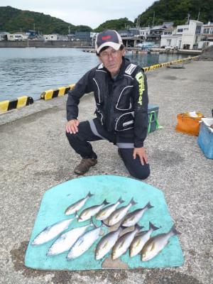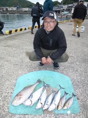 沖一文字外、ヤイトガツオ4本、35〜46cm迄、イサギ、9枚、28〜35cm、かご釣り 大和高田市、西本さん |