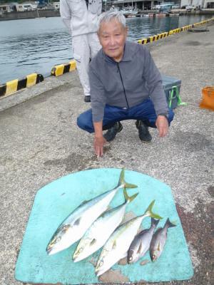 ハマチ〜メジロ | 53〜65cm | 3匹 | かご釣り | オキアミ |