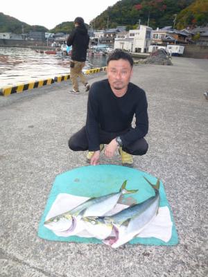 沖一文字内、小イサギ〜イサギ、12枚、25〜30cm、ハマチ、1本、48cm、ヤイトガツオ、1本、36cm、かご釣り 奈良、奥谷さん |
