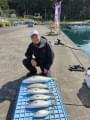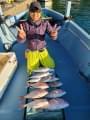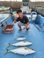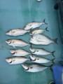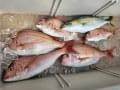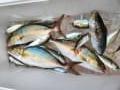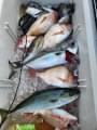 | 今日はマダイ、ハマチ、ヘダイ、アジ、ウスバハギなどが釣れました^_^ エサ釣りのサバが多く釣りづらかったそうです。 |