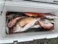 オキアミ五目イサギ狙いで出船しました今日は機嫌良かったです良型多く大漁でした、アミエビで釣りたいのですがソウダガツオ回避の為もう少しの間オキアミで頑張ります、お疲れ様でした!