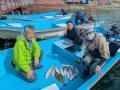 11日釣果 アジ、イサギ狙いです 朝から風波強くアジ釣りをやめてイサギ狙い、ぼちぼち釣れて帰る頃には皆さんよく釣ってくれました