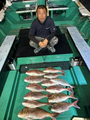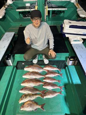 コメント 午後便タイ釣り出船しました。 小ぶりが多くなってきましたがよく釣れました。 船内35枚でした。