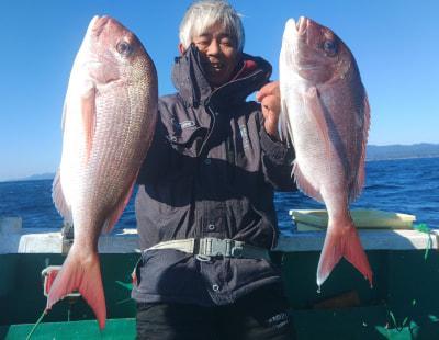 平井さん シマアジはダメでしたがマダイが2枚釣れました